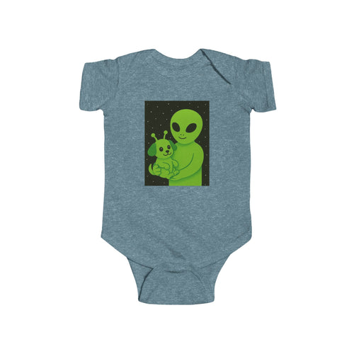 Alien Baby Bodysuit - Cute Green Alien Holding Puppy Infant Onesie